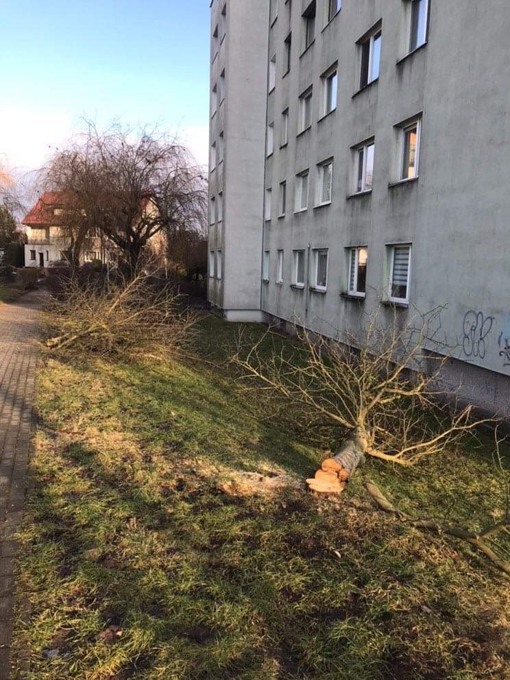 jak zgłaszają mieszkańcy, w zeszłym tygodniu doszło do wycinki drzew przy ul. Kormoranów. Załączam zdjęcia. Wycinka miała miejsce na terenie spółdzielni mieszkaniowej. W związku z powyższym proszę o odpowiedź na poniższe pytania:
