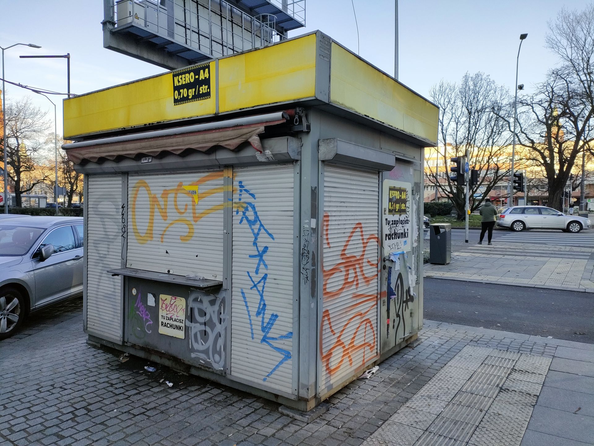 - kiosk przy Alei Niepodległości, w rejonie skrzyżowania z ul. Dworcową (https://maps.app.goo.gl/L8ooX3wDEuF99wVRA),