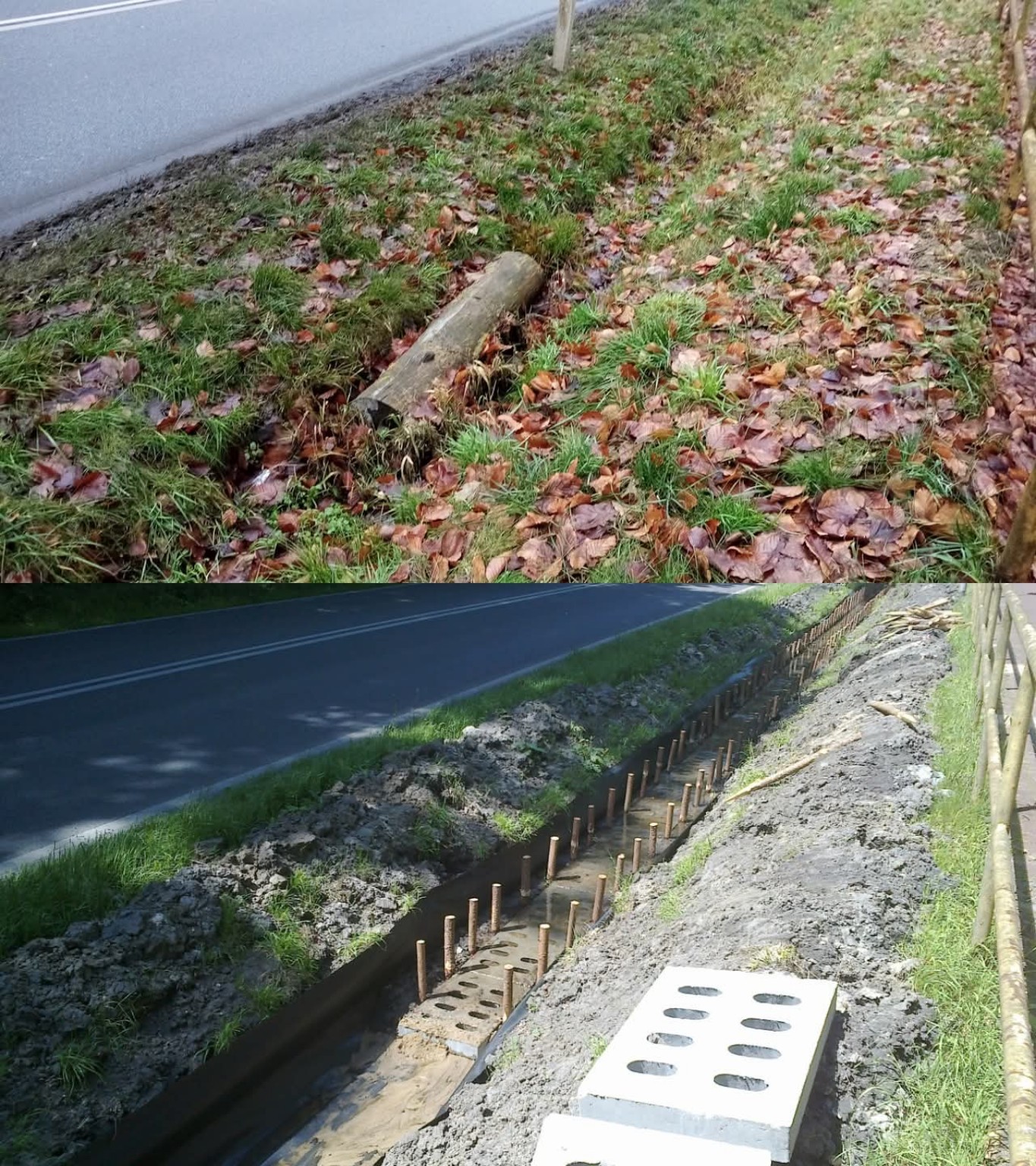 W załączeniu fotografie otrzymane od mieszkańców (jedna z nich pokazująca moment wykonywania przebudowy koryta cieku) oraz wykonane przeze mnie.