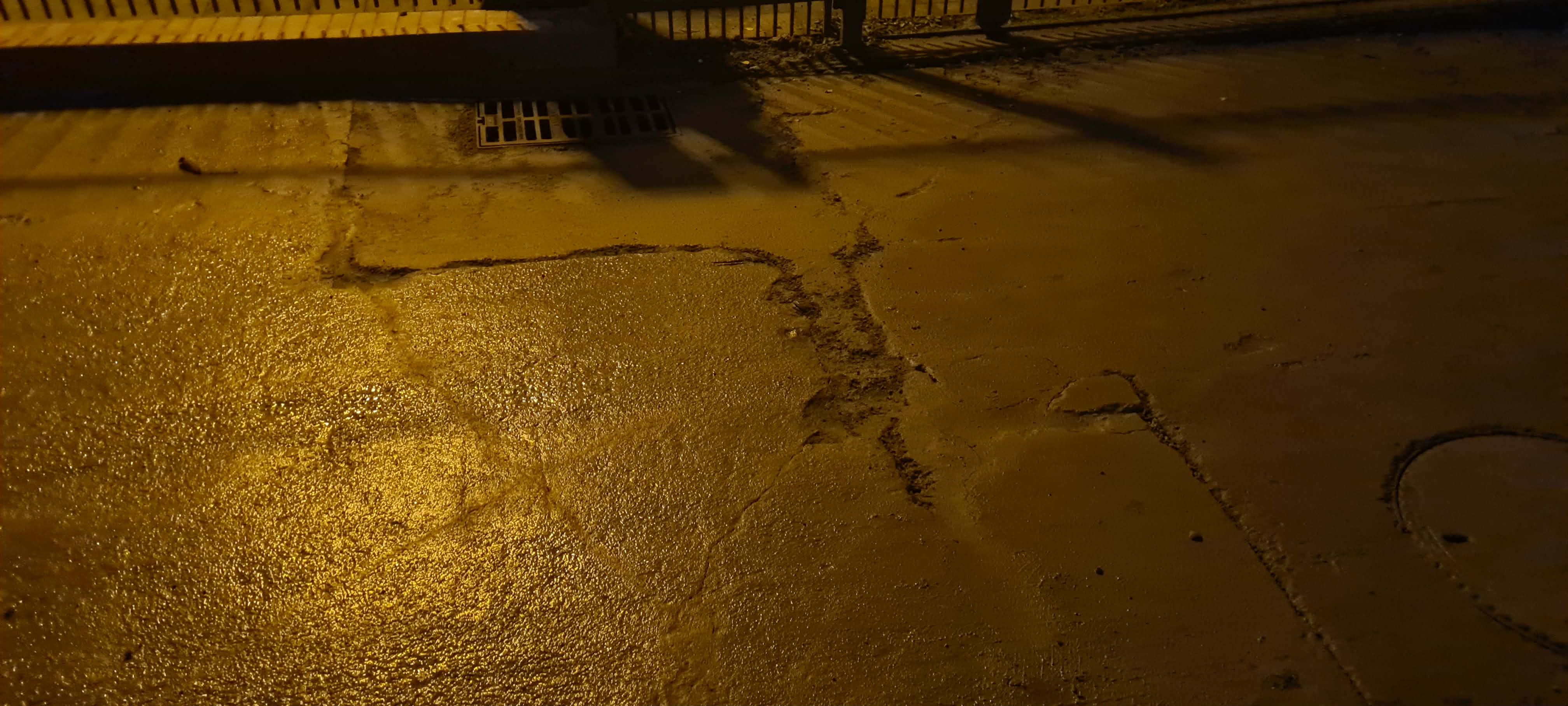 Z dokumentacji fotograficznej przekazanej przez mieszkańców oraz z wcześniejszego pisma z dnia 09.12.2025 r. wynika, że nawierzchnia: została odtworzona z płyt żelbetowych z 1972 r., posiada liczne pęknięcia, wyszczerbienia i ubytki, wykazuje nierówności powodujące uskoki między płytami, ale przede wszystkim nie zapewnia prawidłowego spływu wód opadowych do wpustów kanalizacji deszczowej.