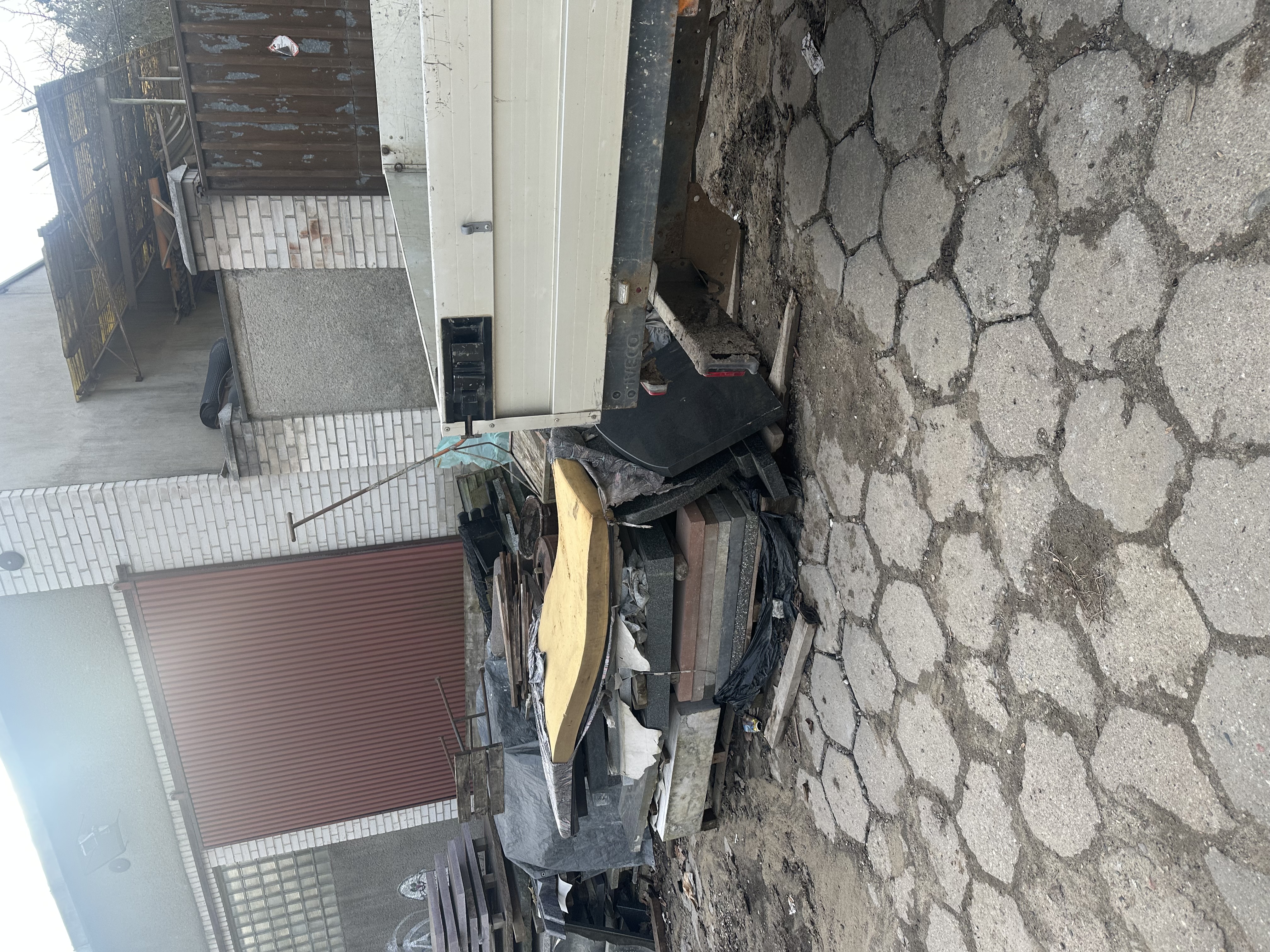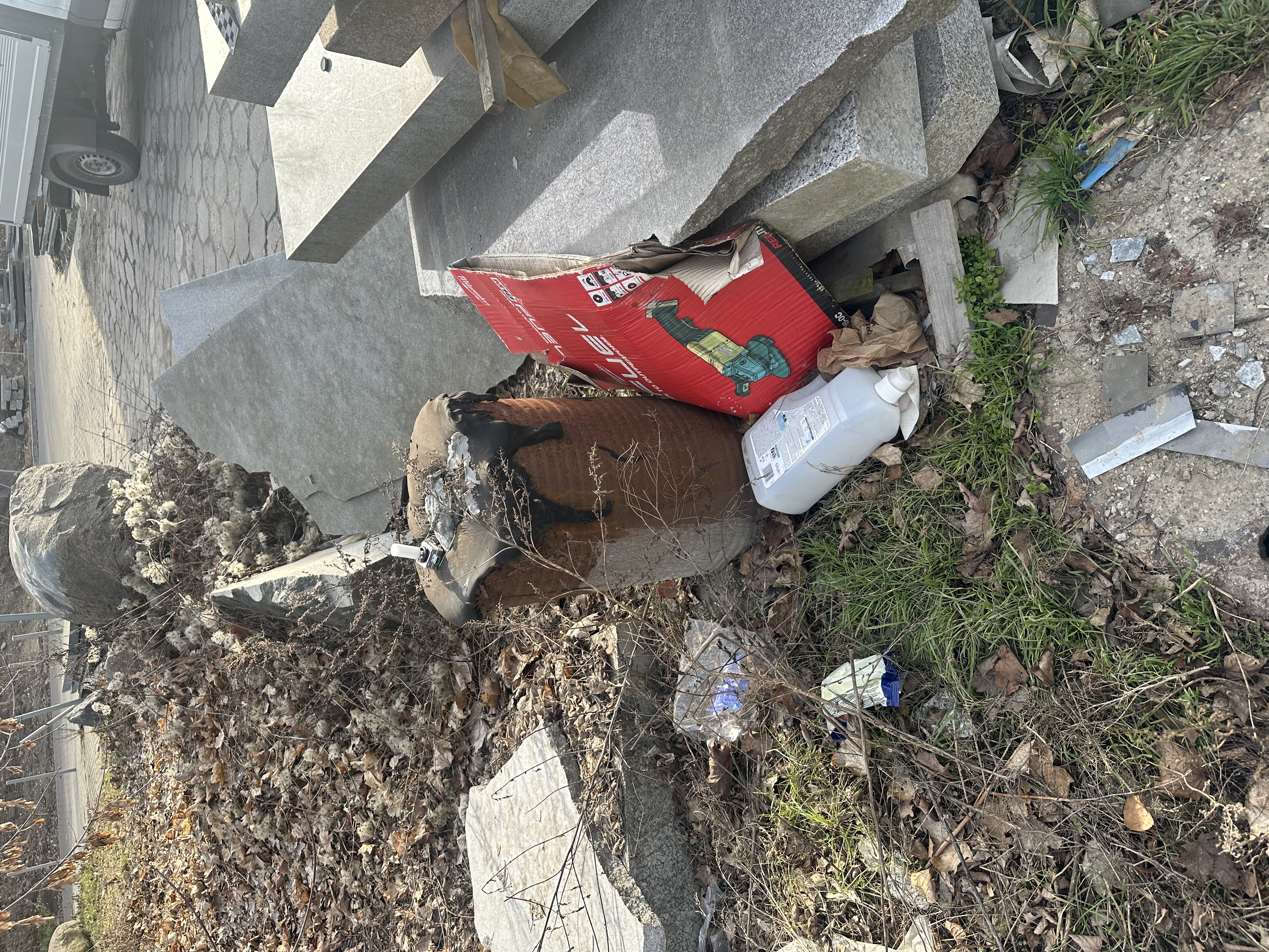 Na poboczach oraz części jezdnej składowane są płyty kamienne, elementy betonowe, odpady budowlane, opakowania po chemikaliach oraz inne nieczystości. Materiały te są rozrzucone również w rejonie przejścia na osiedle, co nie tylko negatywnie wpływa na estetykę przestrzeni publicznej, ale przede wszystkim stwarza zagrożenie dla bezpieczeństwa pieszych i kierowców. Teren sprawia wrażenie niekontrolowanego składowiska odpadów.