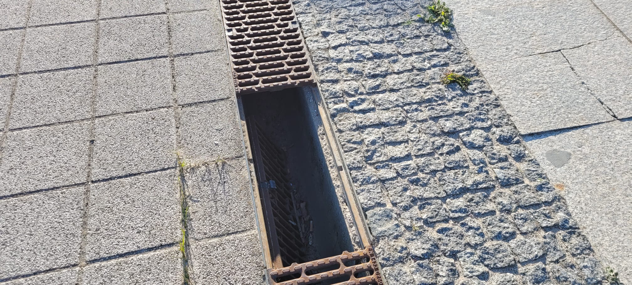 • uszkodzenia odwodnienia liniowego obejmujące braki w ułożeniu rusztu na kanale odwodnieniowym.