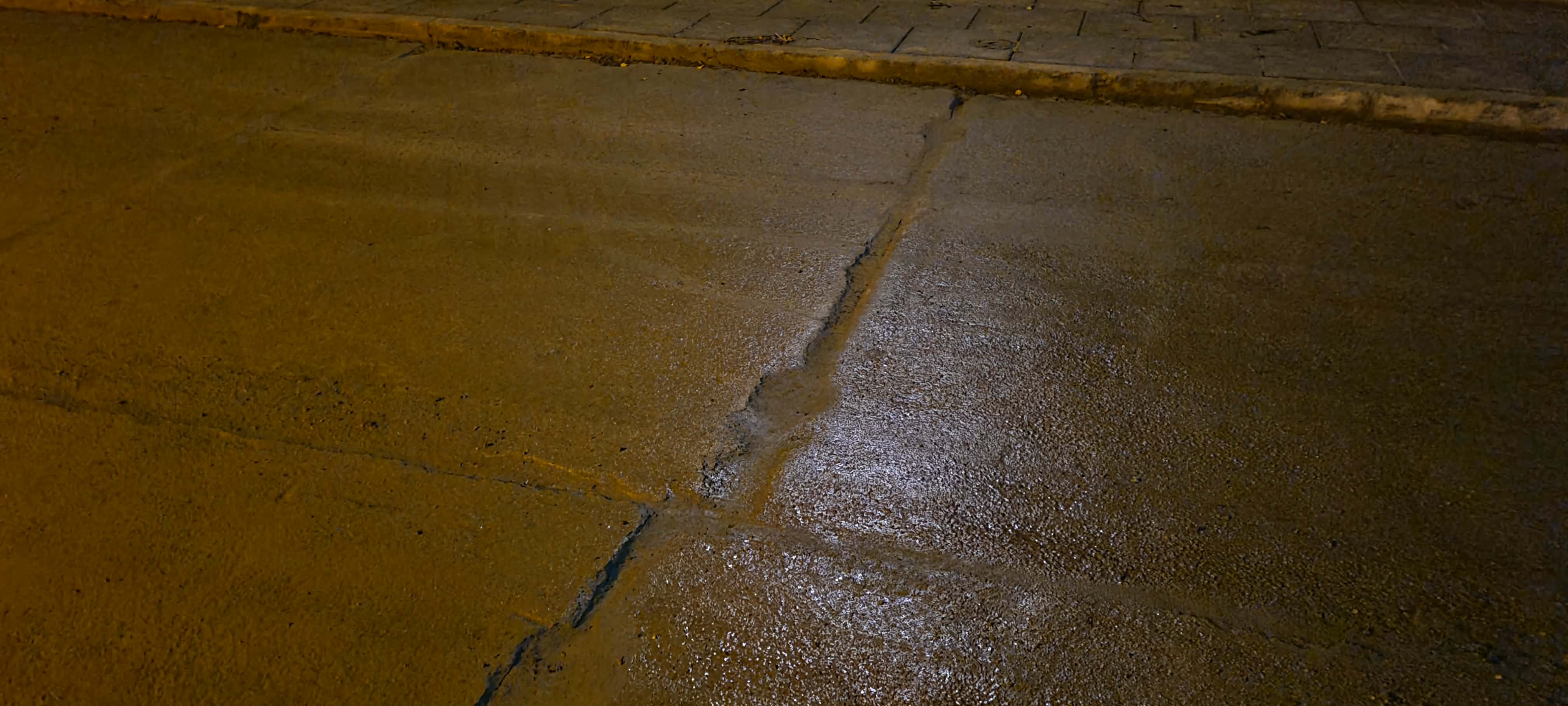 Z dokumentacji fotograficznej przekazanej przez mieszkańców oraz z wcześniejszego pisma z dnia 09.12.2025 r. wynika, że nawierzchnia: została odtworzona z płyt żelbetowych z 1972 r., posiada liczne pęknięcia, wyszczerbienia i ubytki, wykazuje nierówności powodujące uskoki między płytami, ale przede wszystkim nie zapewnia prawidłowego spływu wód opadowych do wpustów kanalizacji deszczowej.