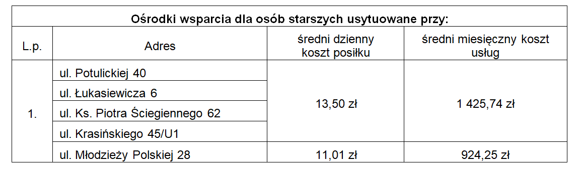 § 1. W Zarządzeniu Nr 149/25 Prezydenta Miasta Szczecin z dnia 28 marca 2025 r. w sprawie ustalenia średniego dziennego kosztu posiłku, średniego miesięcznego kosztu usług oraz opłaty za transport dla uczestników szczecińskich ośrodków wsparcia finansowanych w ramach realizacji zadań własnych Gminy Miasto Szczecin (zm. Zarządzenie Nr 660/25 Prezydenta Miasta Szczecin z dnia 17 grudnia 2025 r.) w tabeli poz. 1 otrzymuje brzmienie: