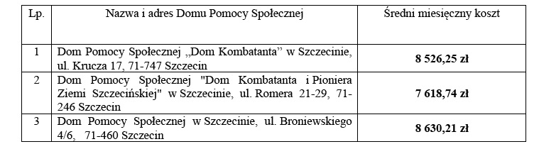 § 1. Ustala się średni miesięczny koszt utrzymania mieszkańca w roku 2026 w domach pomocy społecznej znajdujących się na terenie miasta Szczecin w następujących wysokościach: