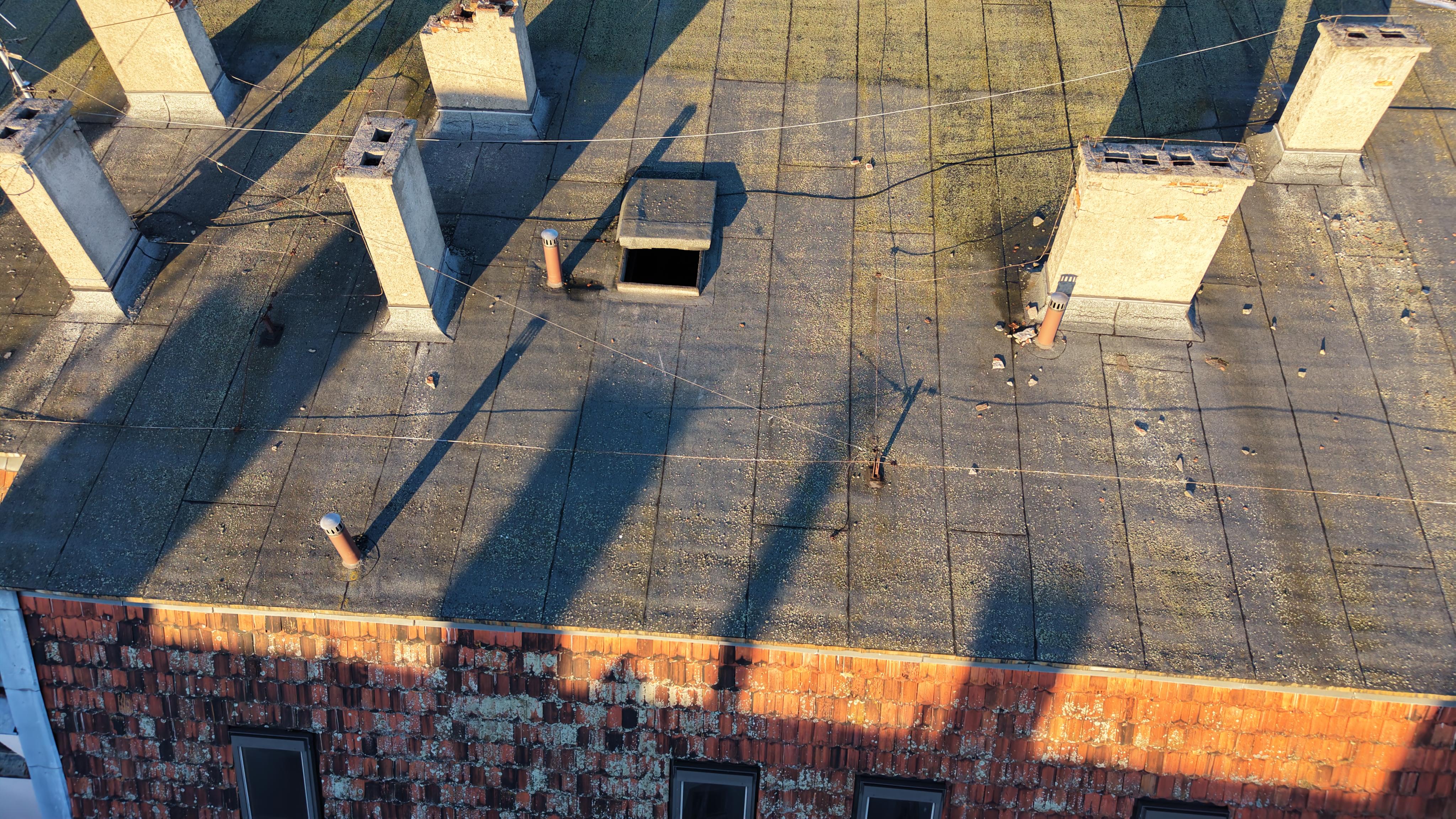 Co więcej dostęp do budynku od strony dachu jest niezabezpieczony. Na dachu otwarte są obie klapy umożliwiające wejście do budynku. Tynk odpada od ścian wewnętrznej elewacji.