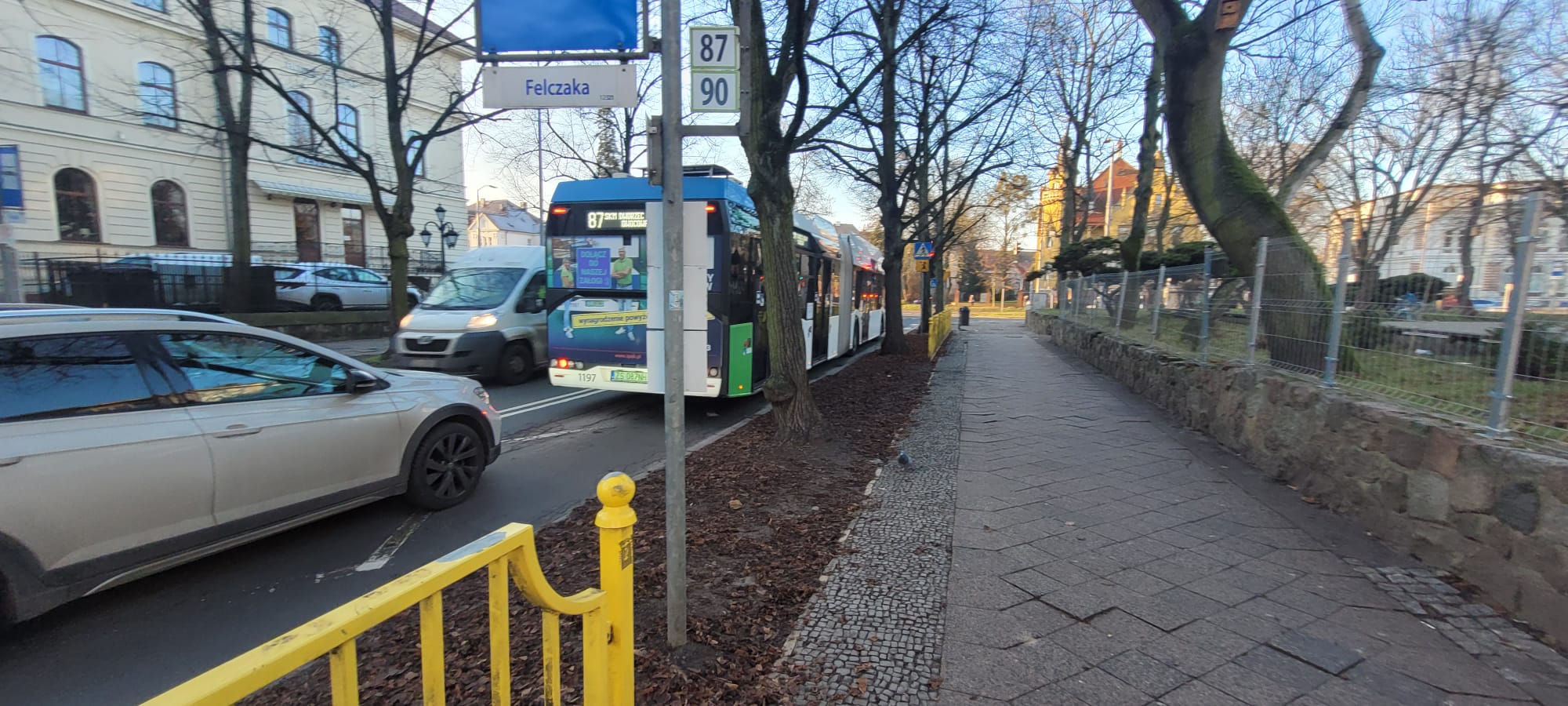 Na stronie 94 SUMP wskazano wprost, że: „Przystanki, perony, stacje, węzły przesiadkowe powinny być projektowane w sposób zapewniający komfortowe przemieszczania się szerokiego grona odbiorców. Konieczne jest przeprowadzanie okresowego audytu w celu identyfikacji i likwidacji barier infrastrukturalnych”. Każda osoba korzystająca z transportu publicznego to często jeden samochód mniej na ulicach Szczecina, co przekłada się na mniejsze korki, ograniczenie emisji spalin oraz poprawę jakości życia mieszkańców. Tym samym zapewnienie odpowiednich warunków przy przystankach autobusowych powinno być jednym z priorytetów miasta. Dodatkowo w SUMP, w ramach Działania 1.18 (str. 114), wskazano: „Budowa oraz przebudowa przystanków autobusowych i tramwajowych oraz stacji i przystanków kolejowych w formie przyjaznej dla pasażera”, co wprost odnosi się do konieczności poprawy standardu infrastruktury przystankowej, także w lokalizacjach takich jak przy ul. Felczaka.