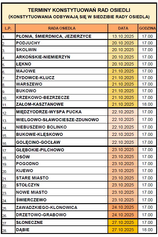 SKŁADY OSIEDLOWYCH KOMISJI WYBORCZYCH, TERMINY ZEBRAŃ KONSTYTUUJĄCYCH ORAZ SZKOLENIA